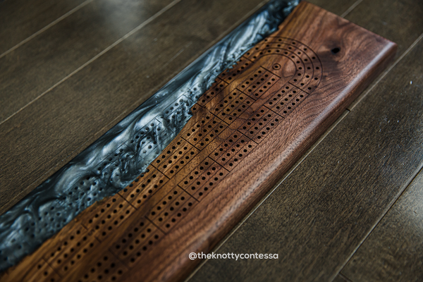 Custom 29 Hand Luxury Black Walnut / Epoxy Cribbage Board
