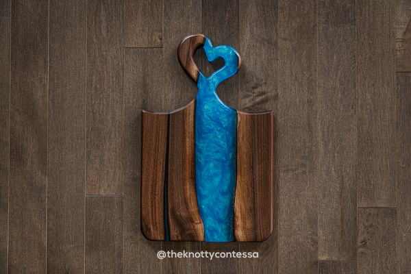 Sweetheart Heart Handle - Black Walnut/Gold Blue Charcuterie Board CHB-HRT-GBL-07