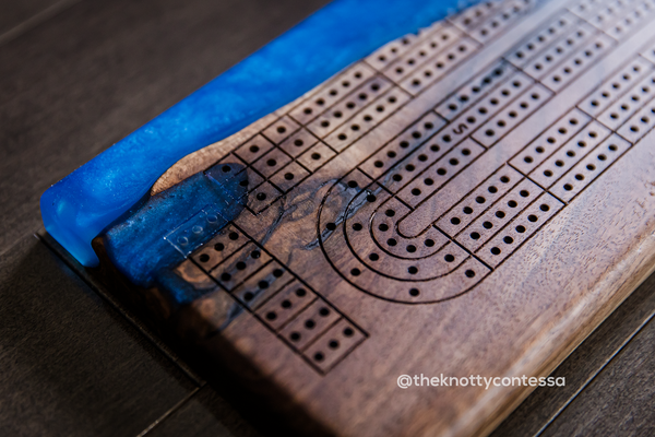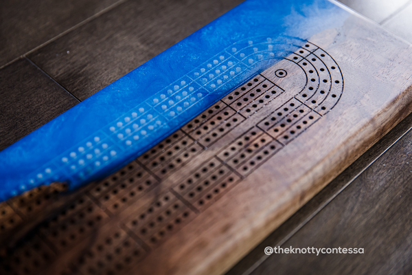 As rare as a 29 Hand, our Luxury Live Edge Epoxy Cribbage boards are made with ethically sourced Ontario Black Walnut combined with Canadian epoxy. Each board comes with nine metal playing pegs. All boards sanded, polished and sealed with matte sealer.