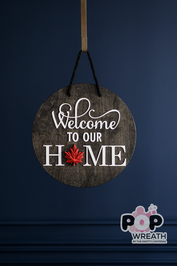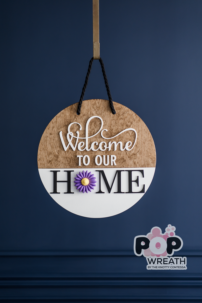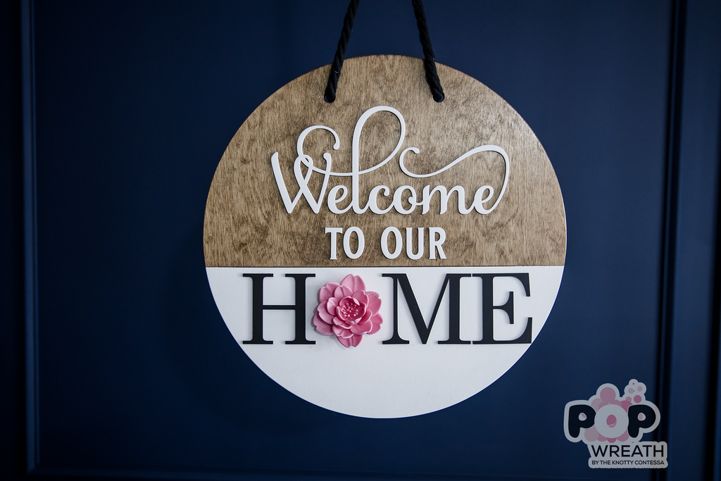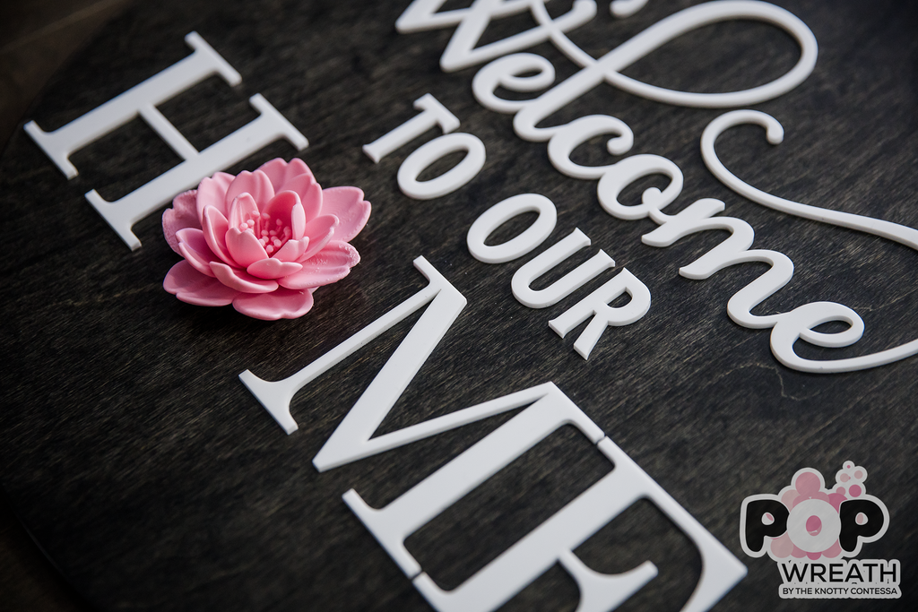 - "Welcome to our" and "H", "M", & "E" are made from 1/8in Acrylic and affixed to board