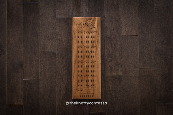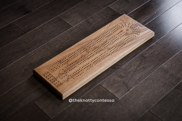 You've dealt the cards and the deck is cut. The dealer turns over the top card to reveal The Starter Card! This gorgeous Ontario Black Walnut Cribbage board is an elegant alternative to the traditional mass-produced Cribbage boards. Each board comes with nine metal playing pegs. All boards sanded, polished and sealed with matte sealer.