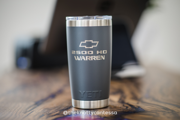 Authentic YETI 20oz/591ml Rambler w/ MagSlider lid personalized to your taste. YETI will be laser engraved on one side with your design.